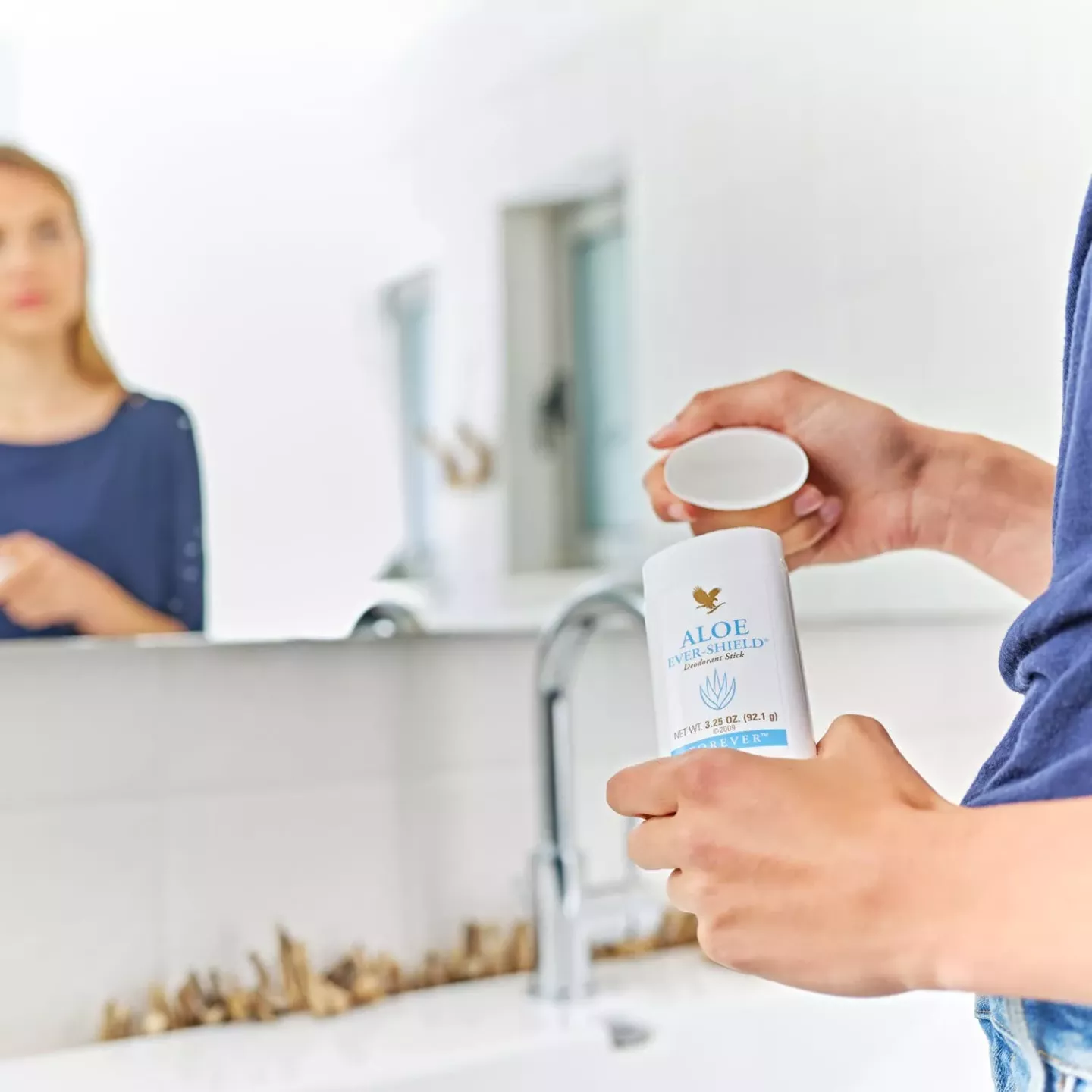 Le Stick Déodorant Aloe Ever-Shield Forever est un déodorant cosmétique sous forme de stick, conçu pour un usage quotidien. Sa formule est sans sels d’aluminium et sans alcool.